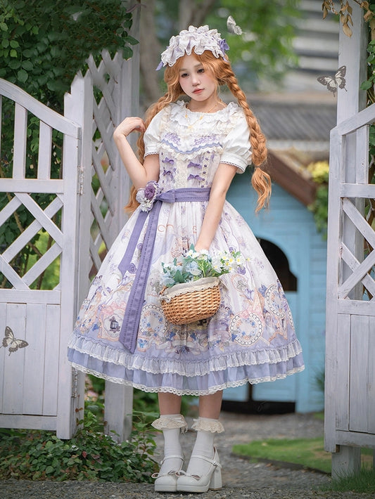 Heart Rhinestone Light Purple Hydrangea Print Bow Hairclips