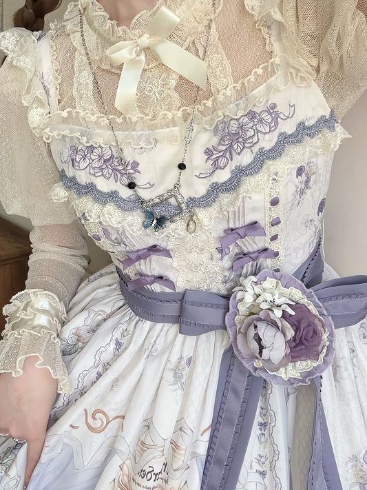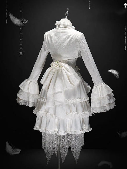 Floral Detachable White Hairclip with Bow Big Jacquard