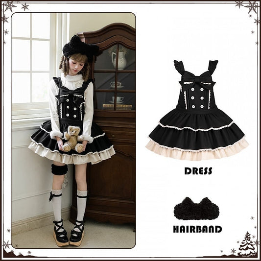 Kitty Sweet Ear Hairband Lolita Dress Winter Black Tiered + Overall