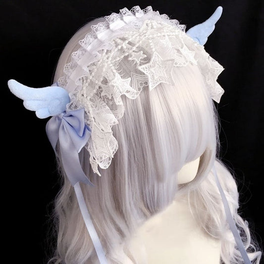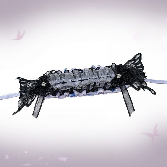 Lace Details with Bow Trim Hairband Studs Black/Lightblue Rose