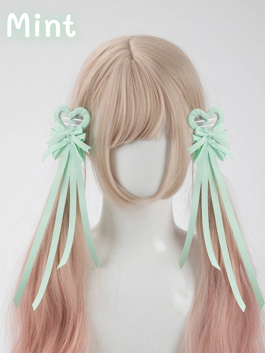 Heart Jirai Kei Dangle Black) Pink Hair Set 2-Color Clip (Pastel