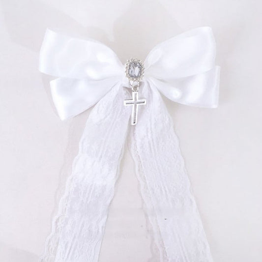 with Round Hairclip Colors Pendant Trim Bow 3 Option Lace Rhinestone Cross