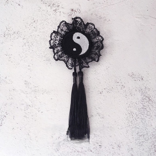 Trim Lace Tassels Black Cheongsam Hairclip Tai Chi