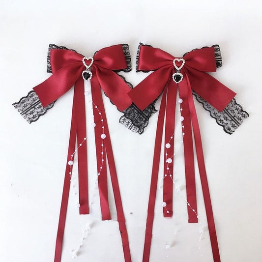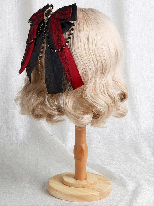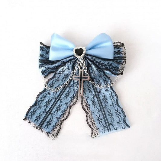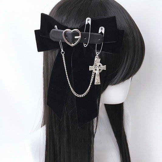 Red Black Cross Charms Gem Hairclip Lace with Bow