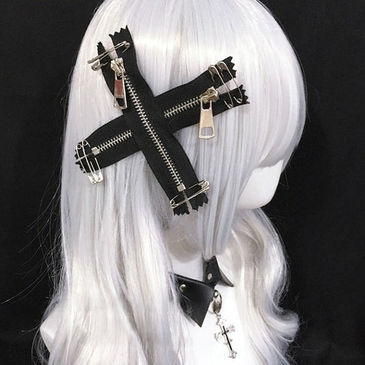 Black/White Details Safety Punk Pin Hairclip with Zipper