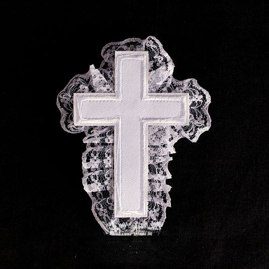 Cross Hairclip with Black/White Bow Lace Trim Decorated