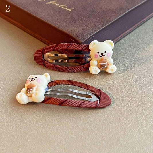 Crown Black/Silver Hairclips Design Ear Decorated Floral Bear