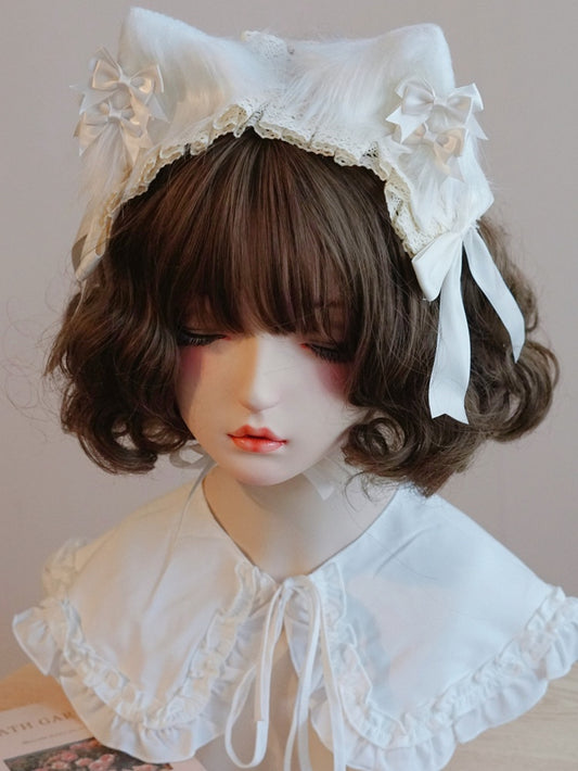 White Cat Lace Bowknot Details Ear Hairband Trim