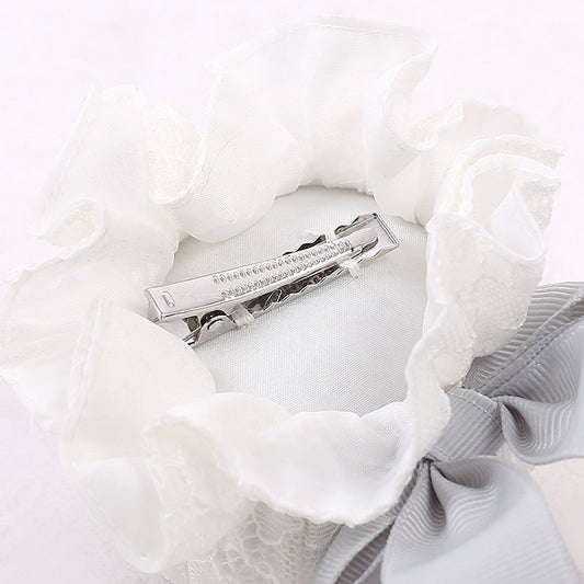 Hairclips Grey Bowknot Kei White Ruffled Trim Jirai Lace