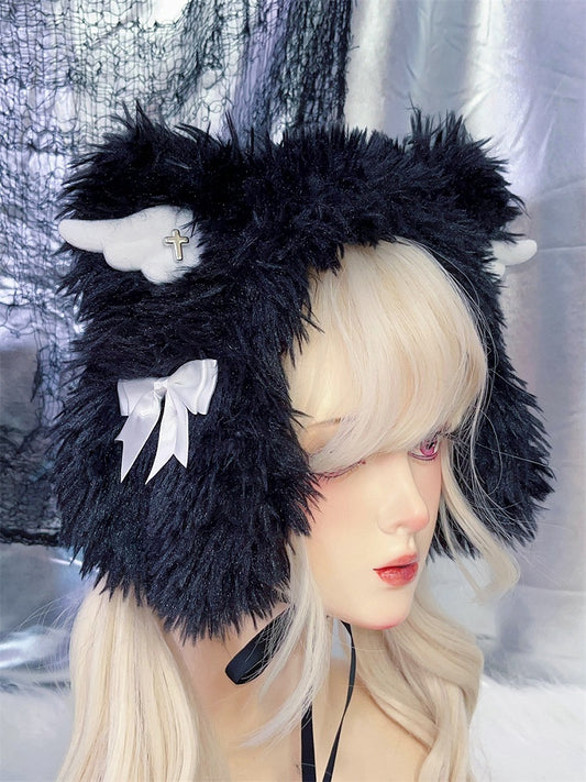 Black/White Cross Wing Lace Trim Gothic Lolita Hairband