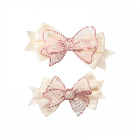 Pink/Dark Red/White/Black Jirai Kei Beads and Rhinestones Adorned Bowknot Hairclips