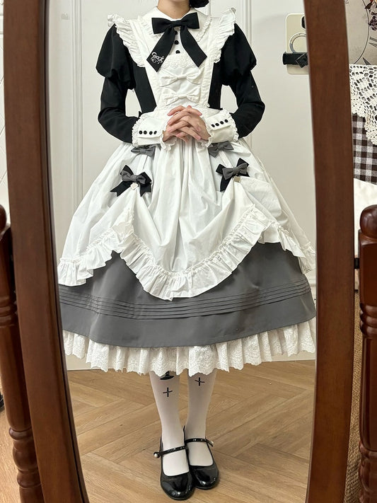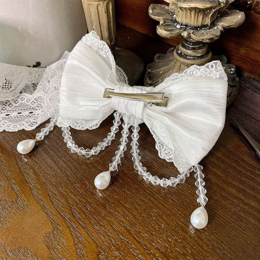 Jirai Kei Dusty Black&White Beaded Heart Lace Bowknot Hairclips