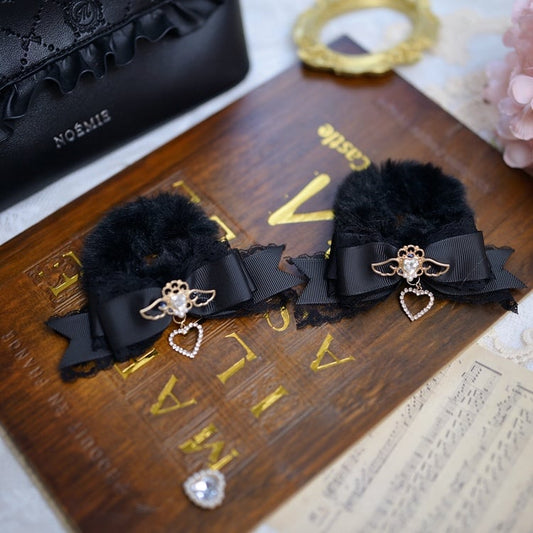Jirai Kei Angel Heart Rhinestones Bowknot Fluffy Scrunchie