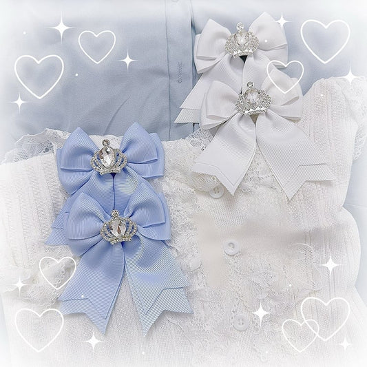 Jirai Kei Blue White Rhinestone Crown Bowknot Hairclips