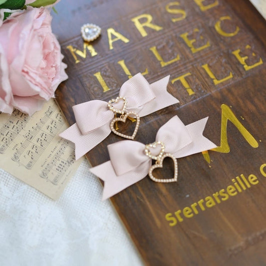Dusty Pink/Black Rhinestone Hearts Bowknot Hairclips