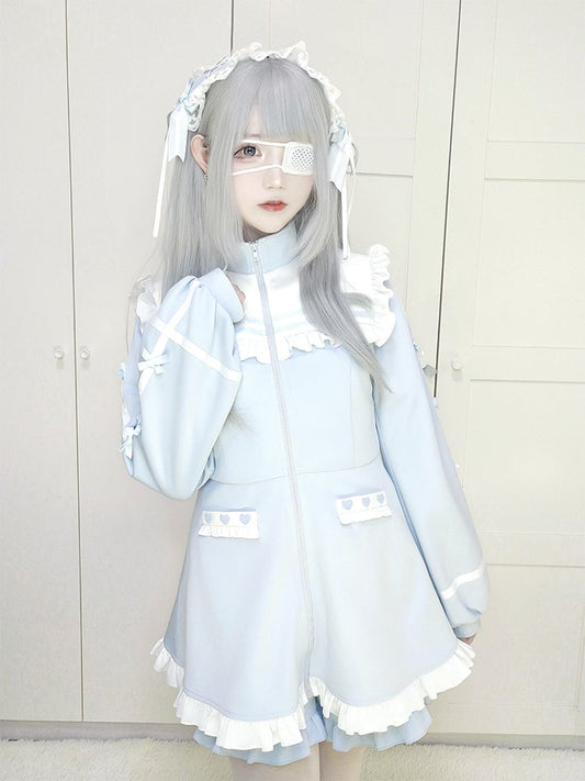 Light Blue Crisscross Lace Trim Jirai Kei Hairband
