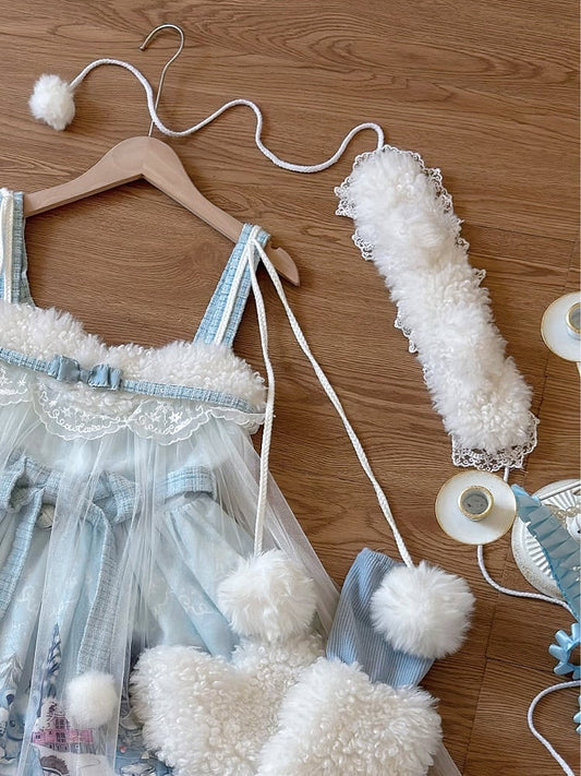 Blue Pink Plush Cross and Bowknot Heart-shaped Hairclip