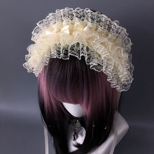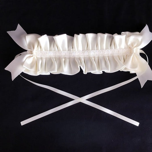 White Clip Lace (Single) Ruffled Bow Hair Pink