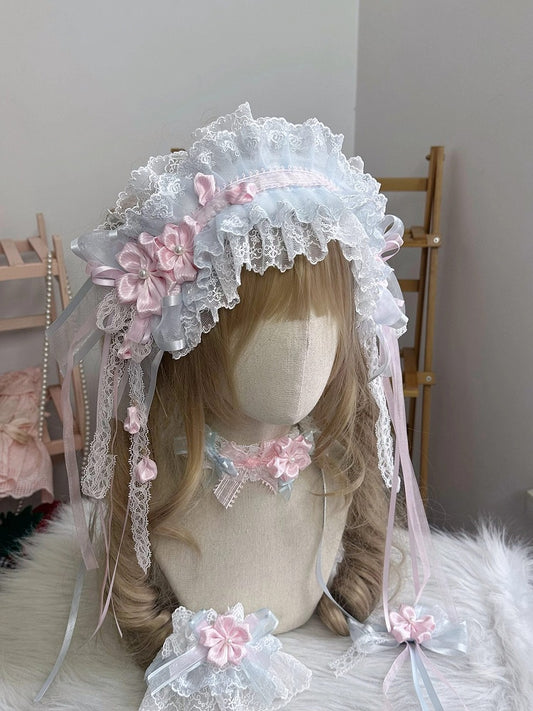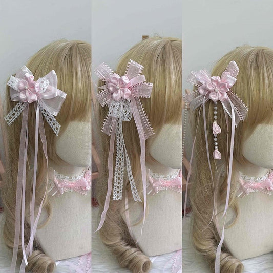 Hairclip Pink/Blue/Green Ribbon and Bow with Lace Lolita Dove Decoration