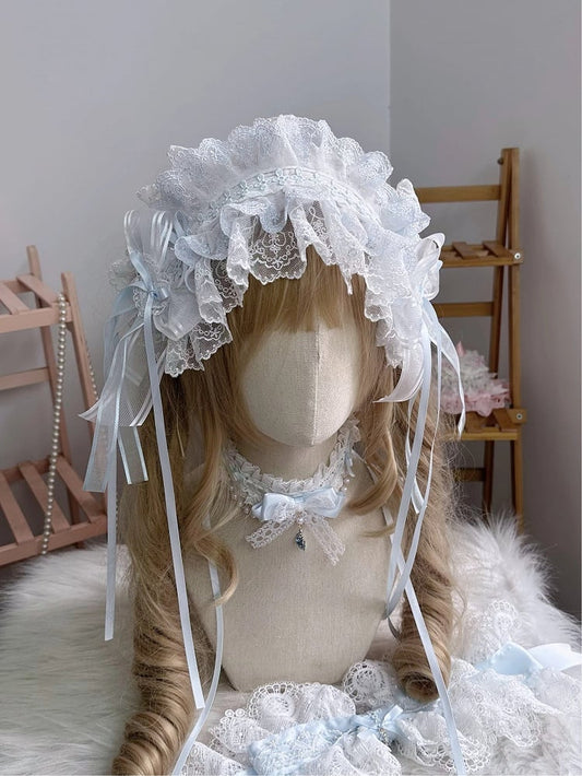 Bow Light Hair Large Lace White Blue Clip (Single) Ruffled