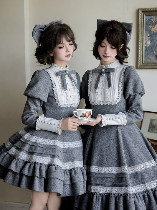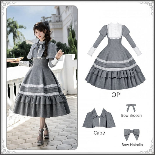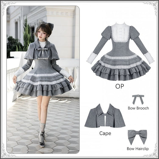 Elegant Lolita + Long Flounce Hairclip Bow Cape OP Short Version Gray Hem