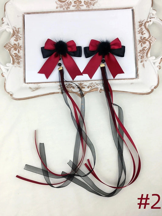 Lolita Sleeves Juliette + Bow Black Kei-inspired Hairclips Brooch Jirai Dress