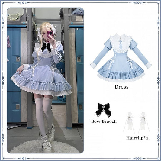 Dress + Hairclips Blue Juliette Kei-inspired Sleeves Lolita Jirai Bow Brooch