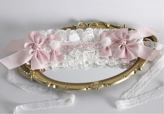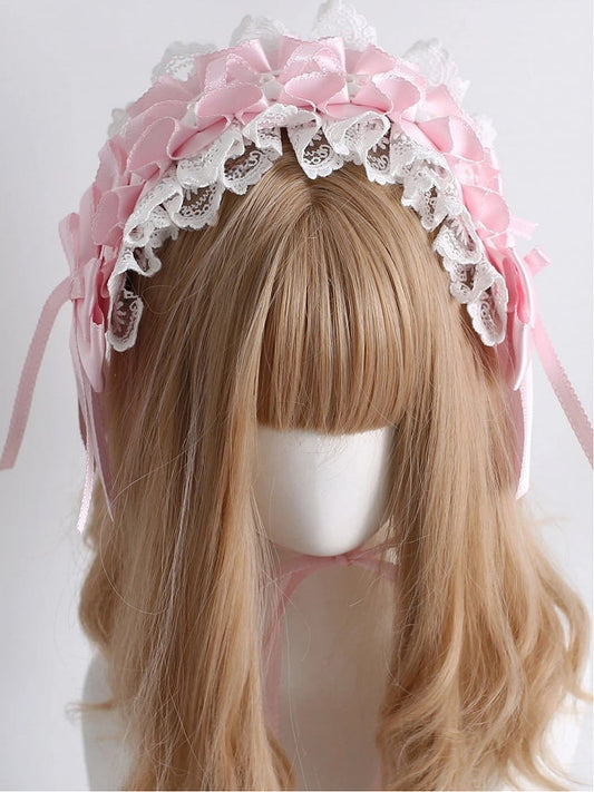 Pink Ribbon Lace Hairband with Accents White Ruffled