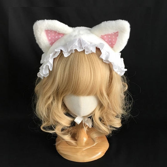 with Cat Trim Black/White Lace Ear Hairband