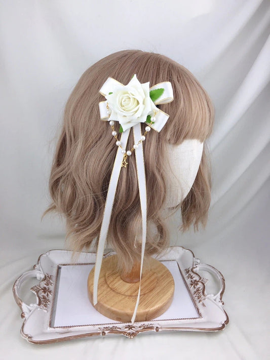 Ribbon Options) Hair (Multiple Color Pearl Rose Clip