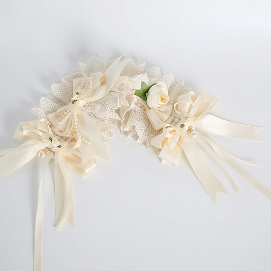 Exquisite Hairclip With Lolita And Floral Beige Bead Lace Bowknot