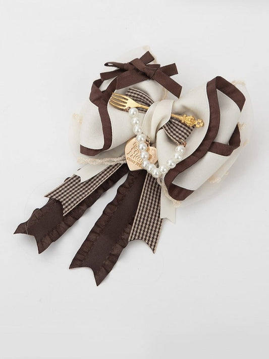 Hairclip White Lolita Tea Bowknot Style Sweet Party Brown