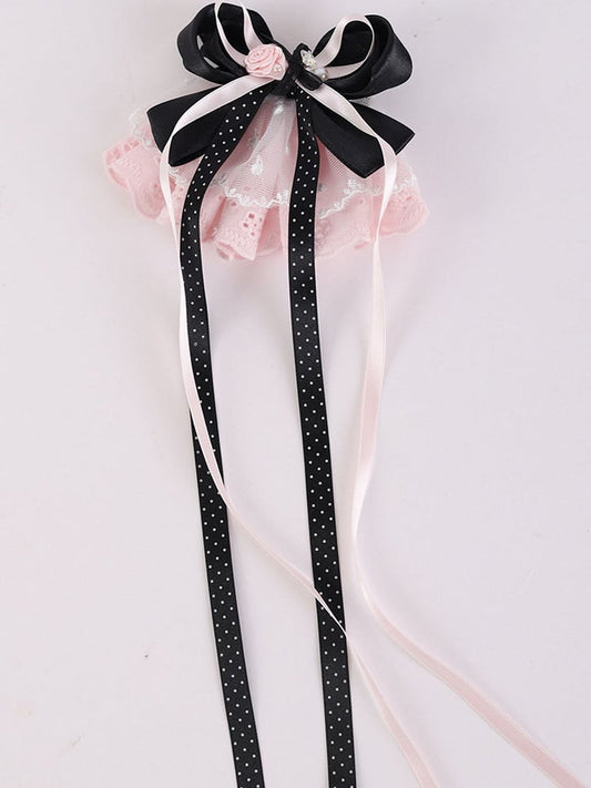 Pink Design Hairclip Black Bowknot Lolita Lace Details Rose