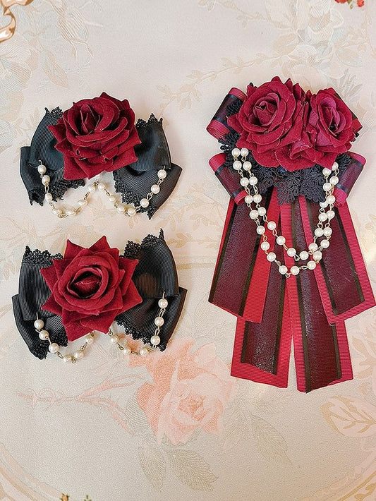 Chain Black Details Red Bead Lace with and Hairclips Lolita Rose