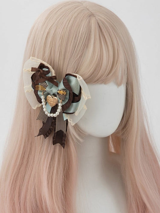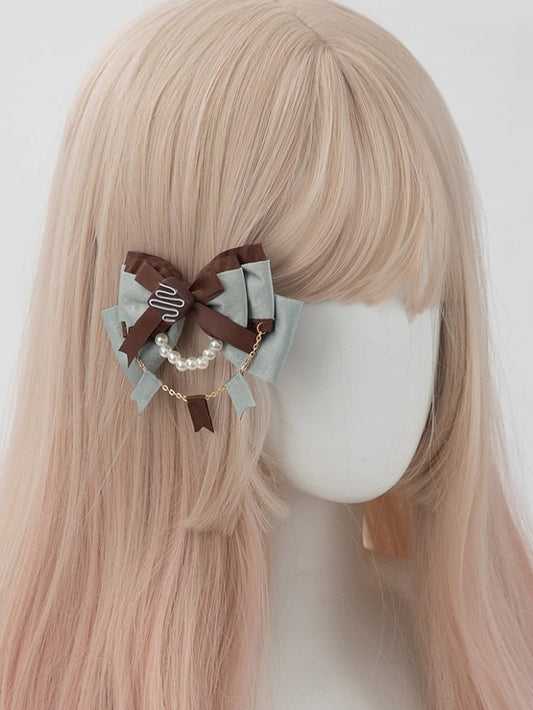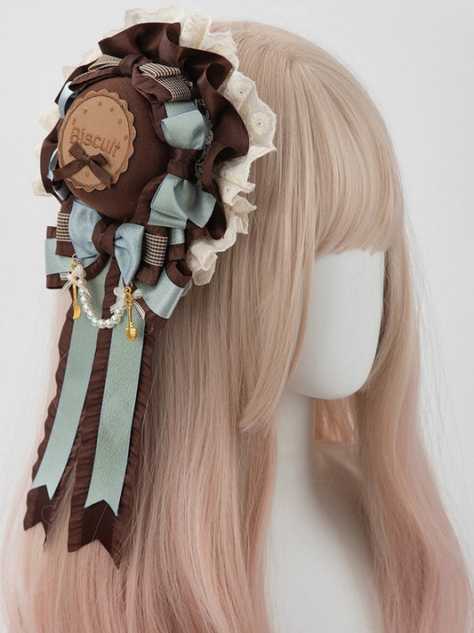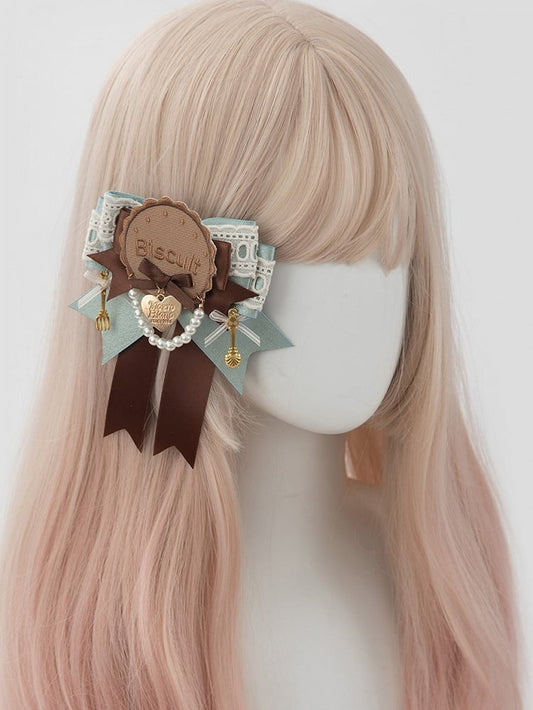 Tea Sweet Bowknot Green Hairclip/Brooch Mint Lolita 2 Biscuit Chocolate Options Party Style