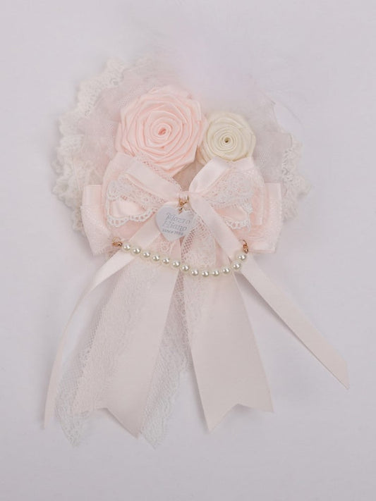 Rose Hairclip/Brooch Feather Pink Sweet Lace Lolita White