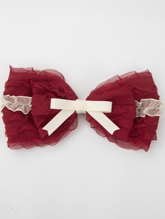 Beige Lace Lolita Red Multi-Layered Bow Hairclip Sweet