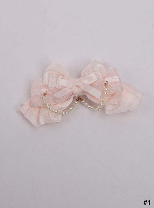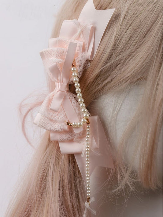 Pink Sweet Hairclip Bowknot Lolita Lace Pearl