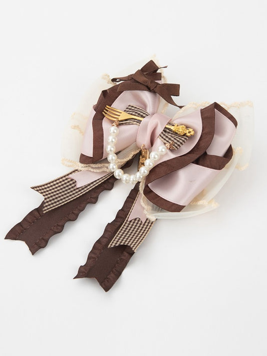 Lolita Sweet Hairclip/Brooch Brown White Party Tea Style Bowknot