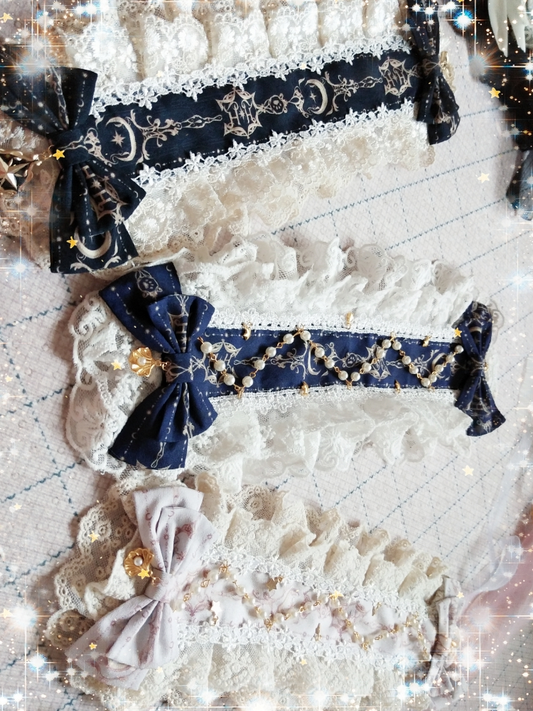 With Star-Moon Lolita Chain Options Hairband 5 Color Pearl Lace Bowknot