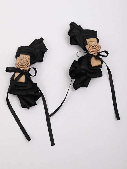Gold Rose Lolita Black Bowknot Hairclip
