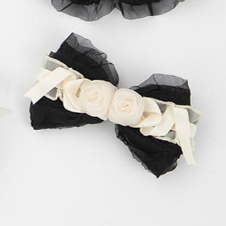 Sweet Black Beige Hairclip Bow Lolita