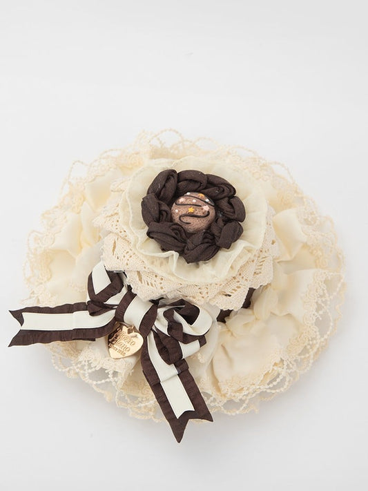 Sweet Lolita Hairclip Design Beige Black Floral Ruffled