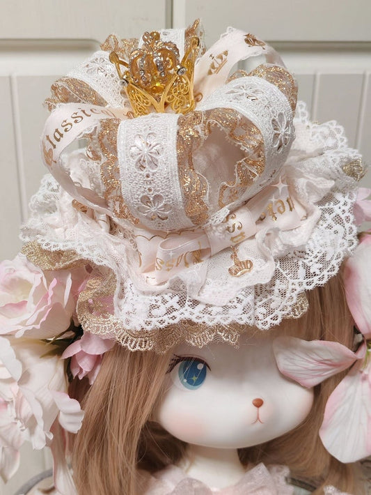 Gold Mini With Lace Hat Detail Crown White Clip Lolita