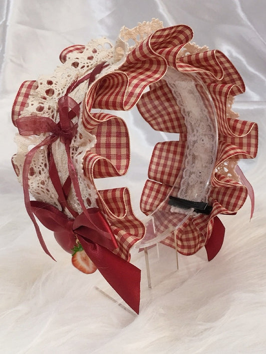 Strawberry Ruffle Decoration Trim Hairclip Red Bow Lolita