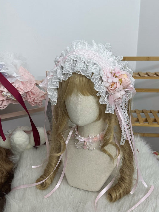 Ruffled Hairband Sweet Lolita Lace Bow Pink White