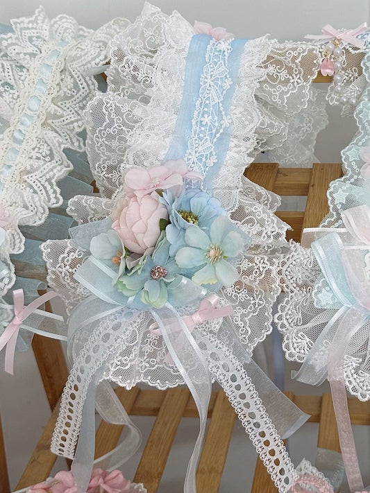 White and / Blue Hairband Detachable Sleeves Lolita Hairclip Bow