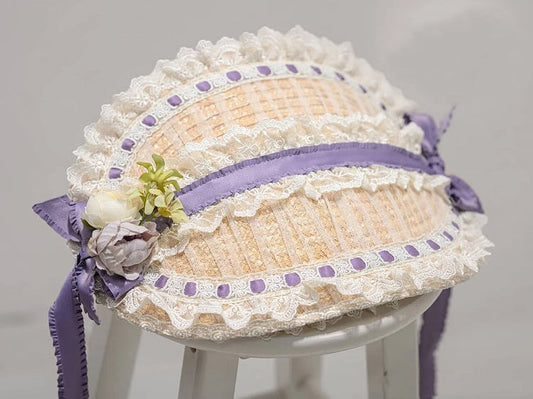 Lace Floral Mini Beaded Trim Decorated BluePink/Pink Hat