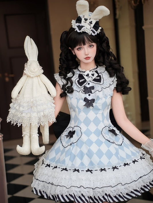 Wonderland Alice Blue Diamond Pattern Bunny Ears Hat Vibes in