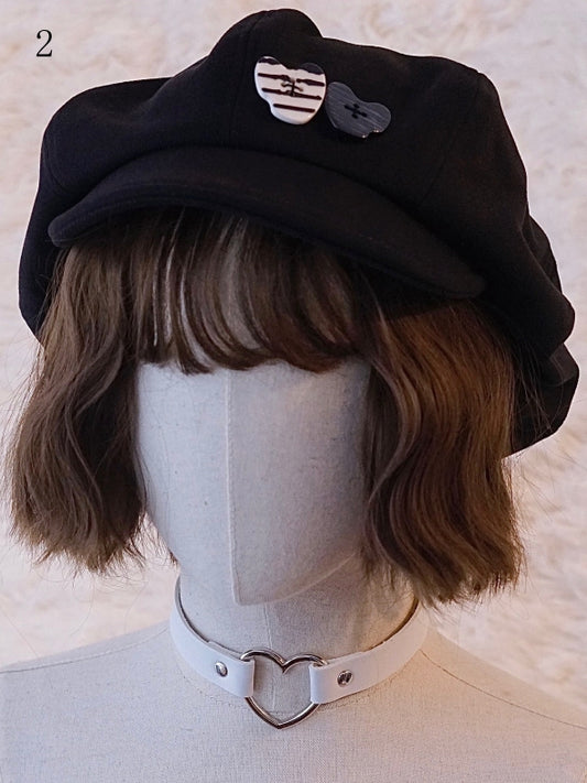 Black Button Decorated Hat Beret